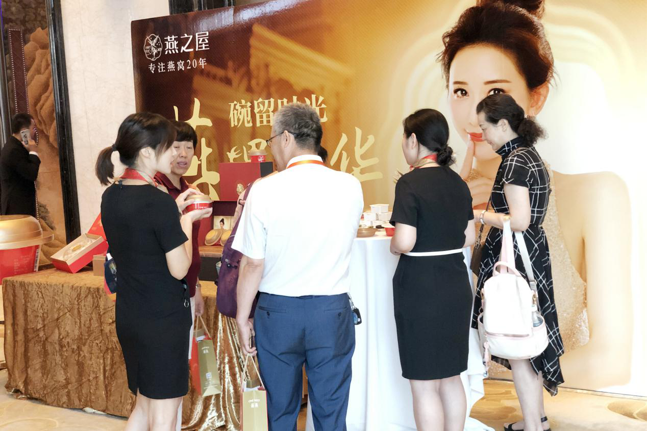 圖:2019海銀財富全球資產(chǎn)配置高峰論壇現(xiàn)場燕之屋工作人員向嘉賓介紹碗燕產(chǎn)品