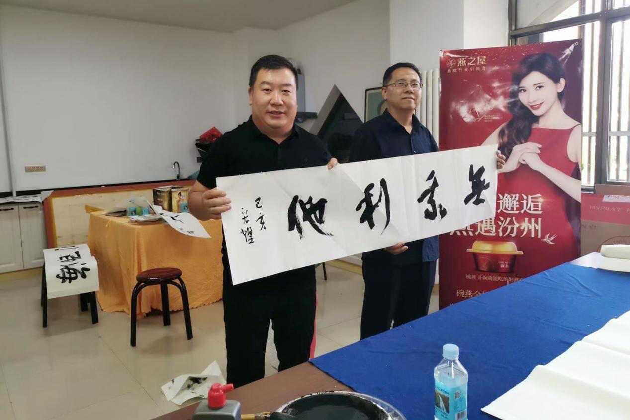 此外,三位重量級的書法家——呂梁市青年書法家協(xié)會主席成宏耀、汾陽市書法家協(xié)會副主席韓志偉、汾陽市書法家協(xié)會副秘書長郭曉峰親臨現(xiàn)場,當場揮毫,向李友全先生及燕之屋汾陽旗艦店贈予“無我利他”、“燕返汾州”、“惠蘊久昌”等墨寶,對燕之屋再添新店表示熱烈的祝賀。