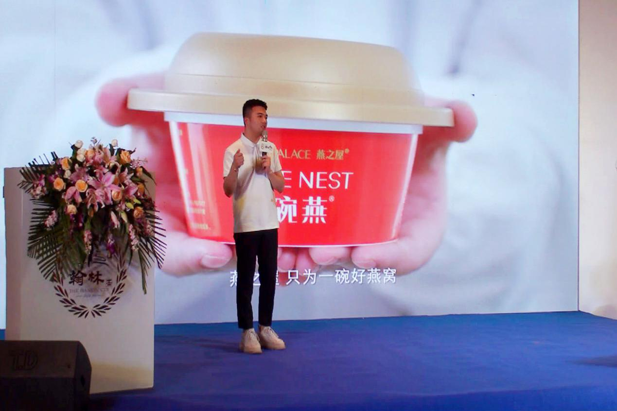 圖:陳慶濤為獲獎選手頒發(fā)燕之屋碗燕獎品