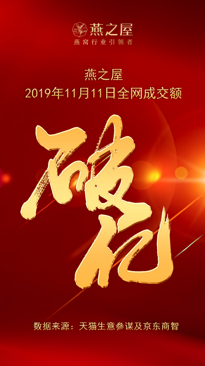 再拿第一!燕之屋勇奪“2019天貓雙11滋補品類銷量四連冠”