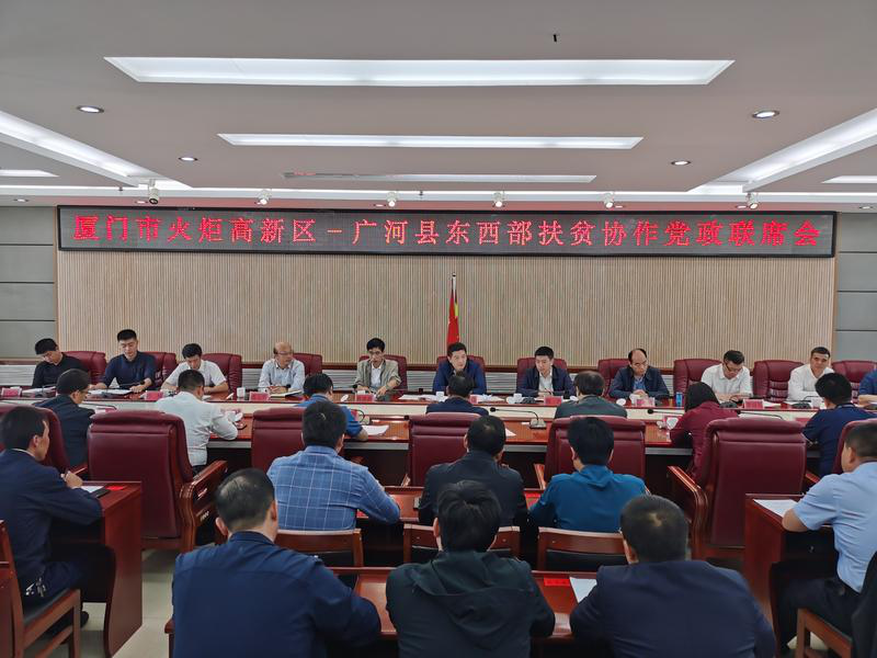 圖:2020年6月11日,廣河縣召開廈門市火炬高新區(qū)-廣河縣東西部扶貧協(xié)作黨政聯(lián)席會(huì)