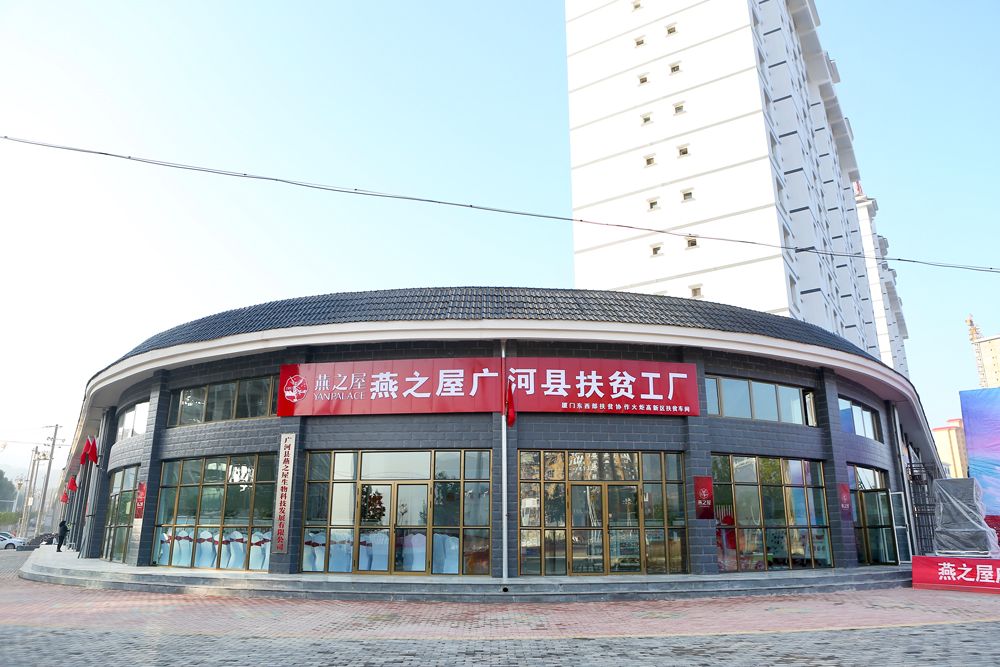 2019年10月17日,燕之屋廣河縣扶貧工廠作為廈門市首批參與廣河縣脫貧攻堅(jiān)的項(xiàng)目,正式舉行了開工儀式。如今半年多過去了,今天當(dāng)周邊的住戶談到燕之屋時(shí),好些人會(huì)指向扶貧工廠的廠區(qū)說:“我們物個(gè)廠里一掛想去哩,人滿哈著哩,我們還不要。”(意即:我們都想去這個(gè)廠,可惜已經(jīng)滿員了,進(jìn)不去了)有家人在燕之屋上班的居民也都很自豪地表示:“我家有人就在里面上班,很好??!”