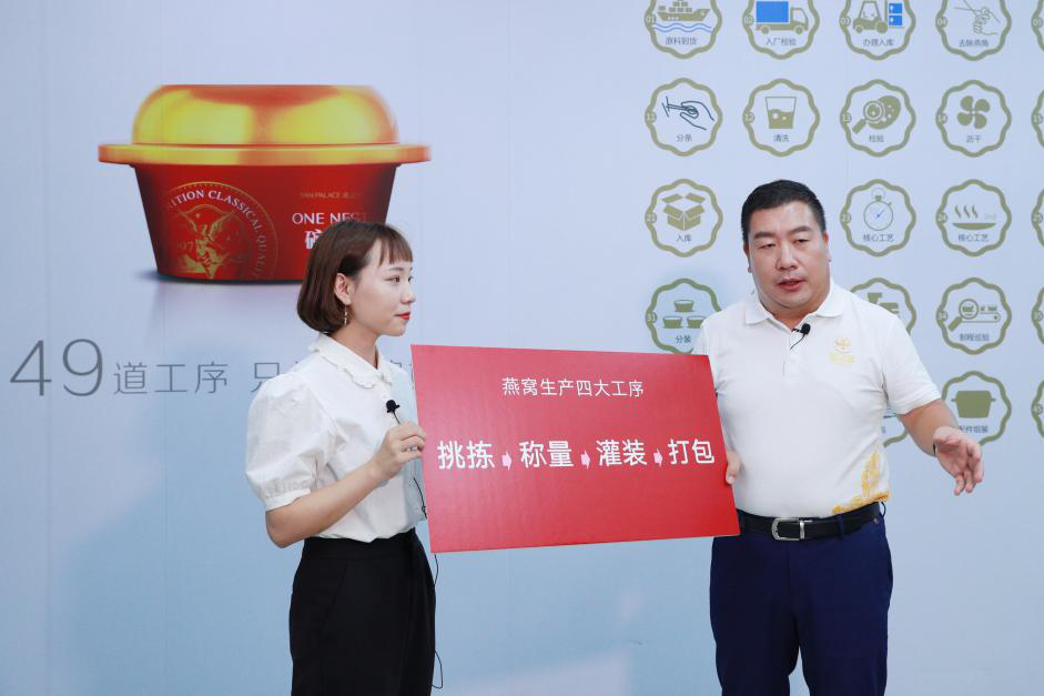 直播當(dāng)晚除了超大福利放送外,李有泉還通過燕窩產(chǎn)品制作的四大主要工序——挑揀、稱量、灌裝、打包四道環(huán)節(jié),為粉絲們介紹燕之屋強大的產(chǎn)品科研實力、以及細致嚴謹?shù)纳a(chǎn)工藝,并在直播最后邀請了一位客戶嘉賓到現(xiàn)場面對面對話,聆聽消費者的真實體驗和感受,針對幾個消費者最關(guān)心、最想知道的問題作出解答。