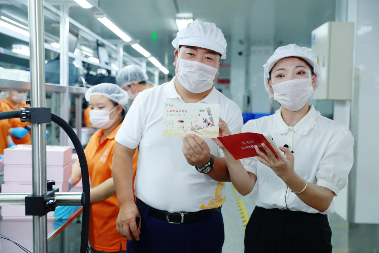 燕之屋打包車間有“產(chǎn)品不落地”的品控點,因為產(chǎn)品掉落時的撞擊可能會影響產(chǎn)品的品質(zhì),比如條狀破壞等,正是這份細致入微的品質(zhì)把控,才鑄就了燕之屋“吃燕窩,就選燕之屋”的品牌聲量。最后,李有泉還親自打包產(chǎn)品,隨機選中一位幸運兒送出燕之屋小粉瓶燕窩年卡的大福利!